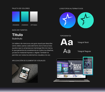 - Logotipo: paleta de colores, tipografías y sistema gráfico